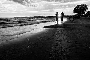 People waking on the beach at Sherkston Shores resort Port Colborne , Ontario