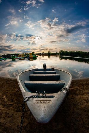 Row boat sitting at the Quarry Sherkston Shores ,Ontario